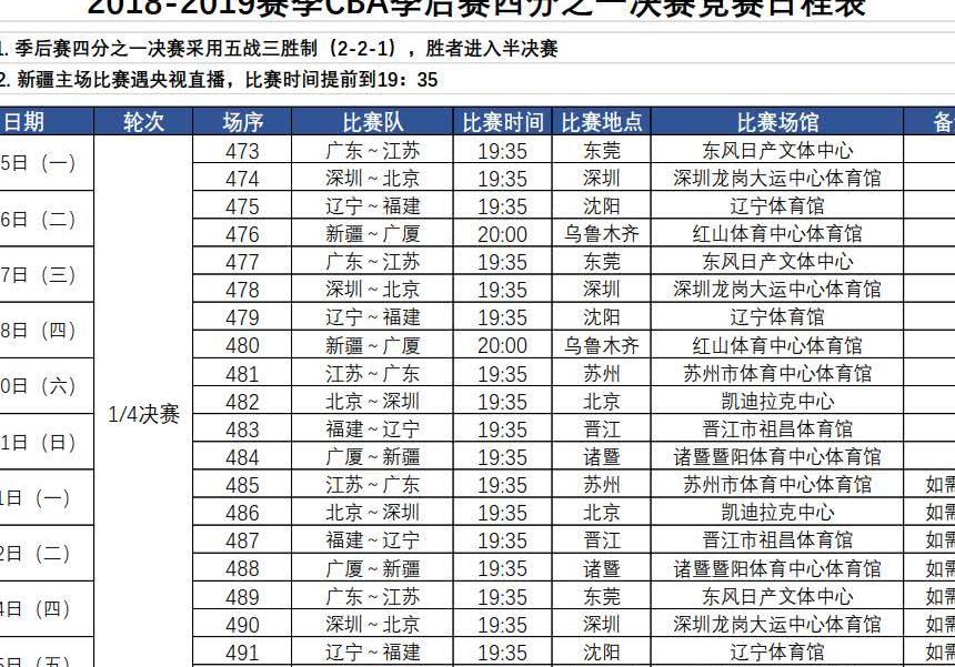 完整赛程表(2024-25赛季NBA季后赛首轮)